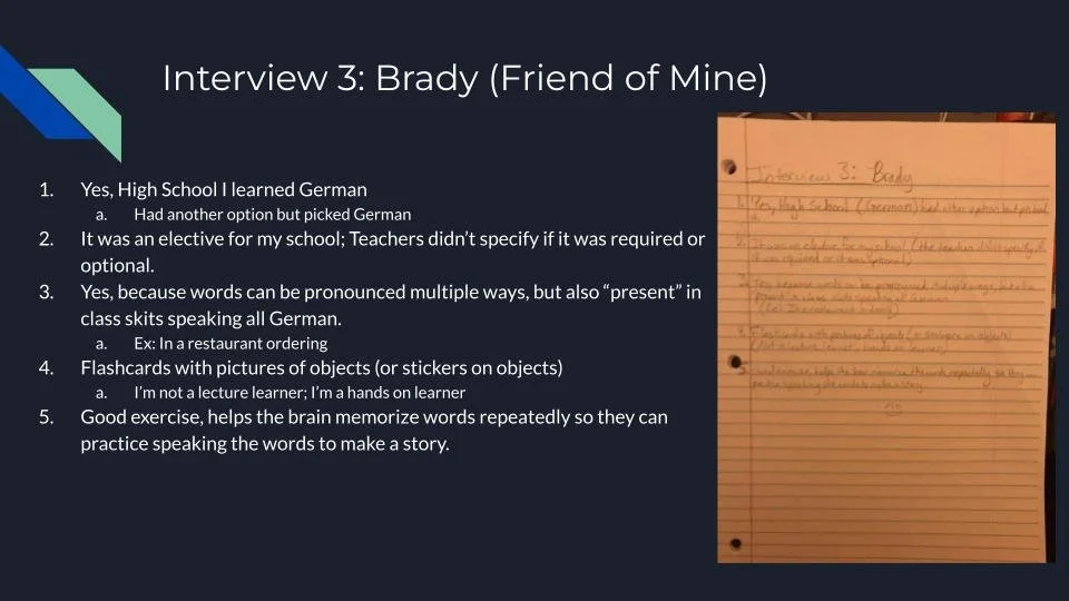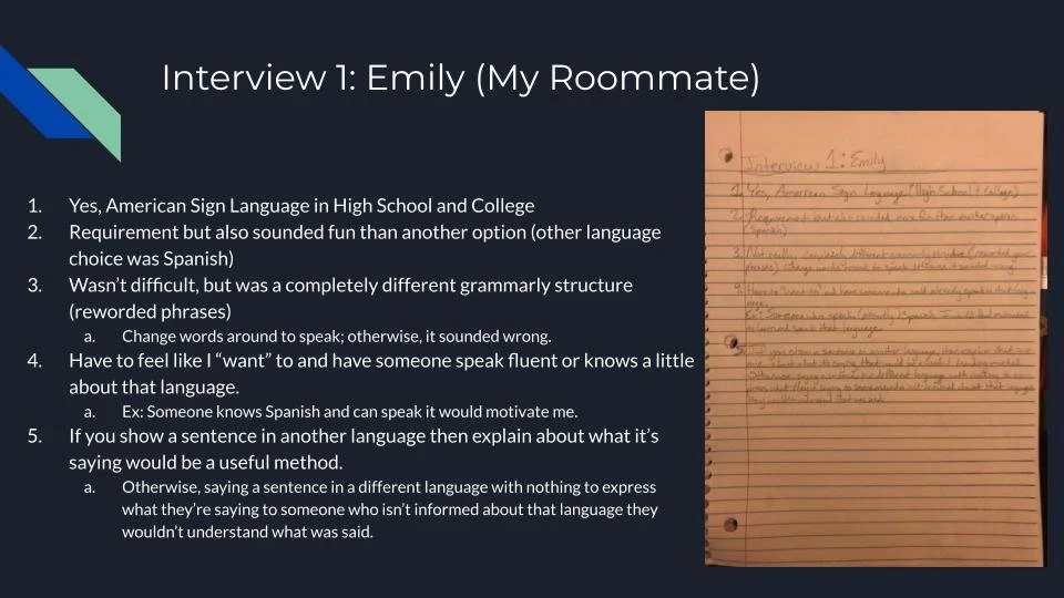 This project was from the App Design class at the University of Michigan-Flint. The app focused on user needs for learning a new language and looking up different topics in that language. The project explores how to interact with the app using different tools and methods based on the user’s needs.