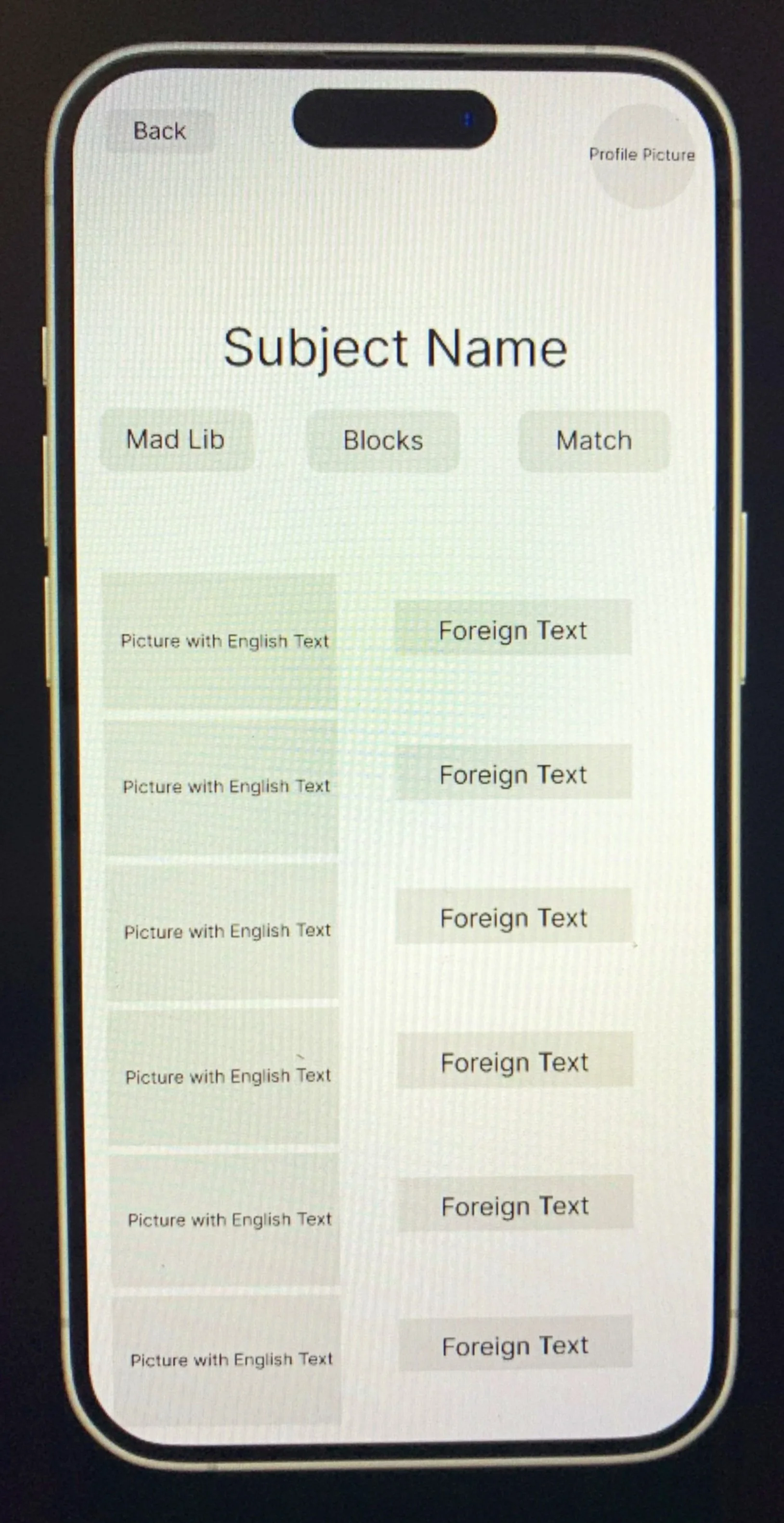 This app was designed as a tool for users who either need to learn a new language for a trip or want to learn so they are prepared for a future trip. The app is designed like the website ‘Quizlet’, where you can make up your own language study sets, but the app creates its own sets based on the user who needs to study them. However, unlike Quizlet, you can contact friends or teachers if you need help with studying or asking questions.